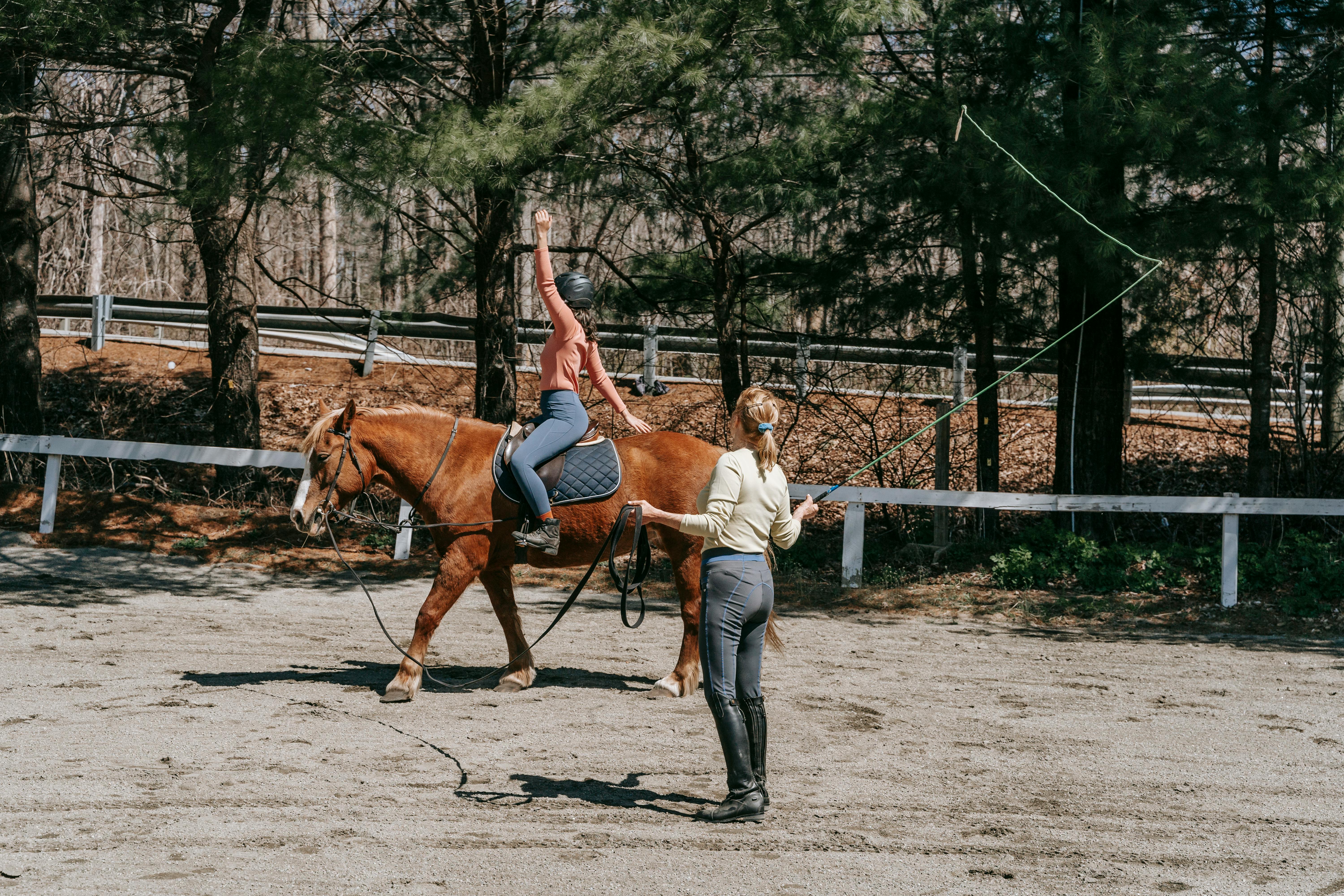 Minun ehdotuksia: ratsastus ilman ohjia riimulla, toinen taluttaa. Ratsastus liinassa ilman ohjia. Ratsastus aidatulla alueella ilman ohjia, toinen ohjaa maastakäsin hevosta. [Opetettu liberty work työskentely maastakäsin] Ratsastus riimulla tai kuolaimetta opetusmestari hevosella; harjoitukset käynnissä kuten jalustimilla seisominen, kevennys, kevyt istunta ja samat myös ravissa hevosen harjasta kaulasta tukea ottaen. Laukan nosto harjoitukset liinassa ja ilman ohjia ennenkuin yksin nostaa laukan. Hevosen lukutaito ja kehonkielen osaaminen antavat ratsastajalle mahdollisuuden ennakoida hevosen tekemisiä, tämä lisää ratsastajan itsevarmuutta huimasti. Hevosen lukutaito kasvattaa rohkeutta ja luottamuksen hevosen kanssa olemiseen. Victoria tallilla opit ennakoimaan hevosen käytöksen.