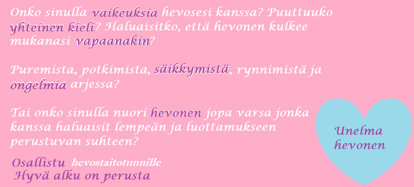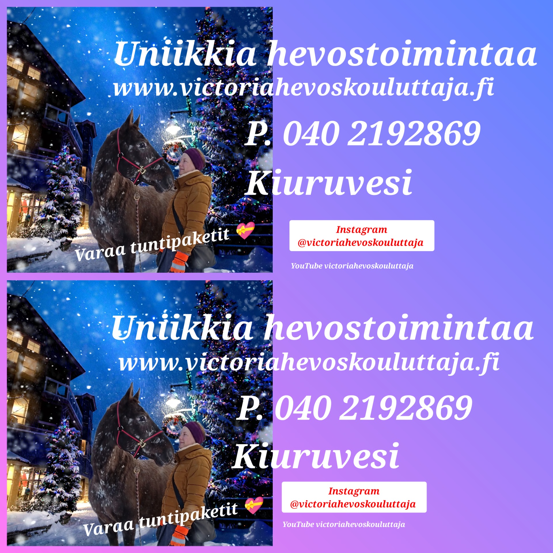 Voit myös kysyä lisätietoja viestillä tai soittamalla p. 040 2192869. Tai sähköpostitse victoriahevoskouluttaja@gmail.com