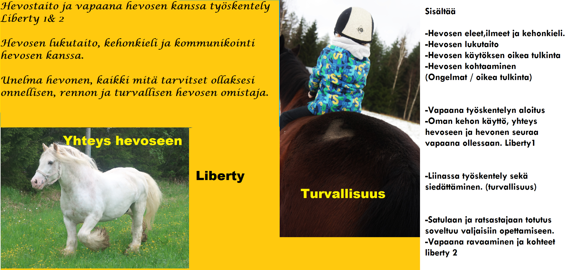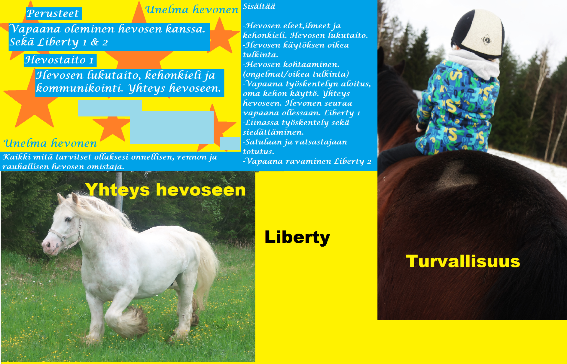 Turvallisesti opetuksessa ja oppien ratsastuksen kanssa hevostaitoja, jotka valmistavat sinua omaa hevosta varten. Opit paljon myös kaikkea hauskaa kuten temppujen opetusta hevoselle!